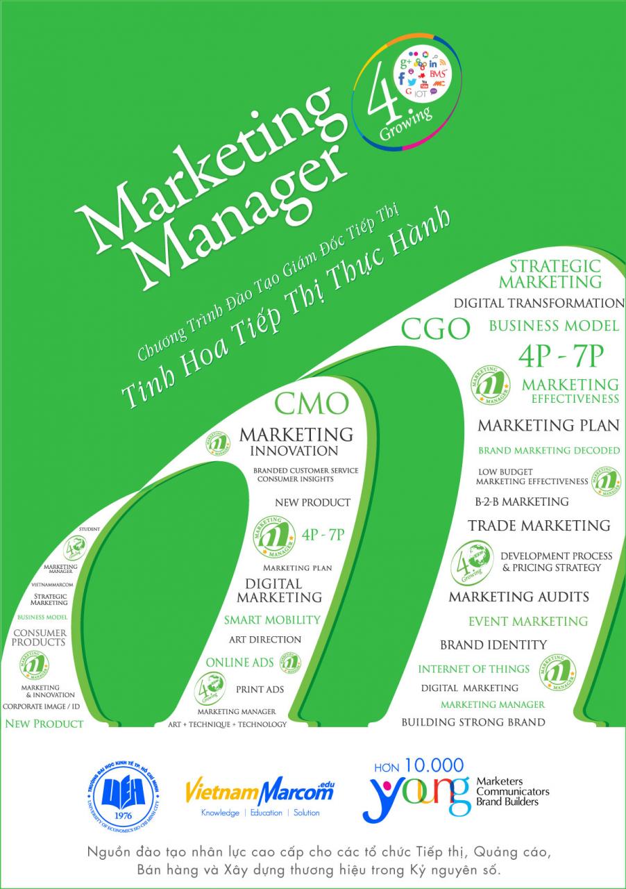 Với hơn 79 khóa đào tạo Giám đốc tiếp thị  được triển khai thành công và liên tục trong 14 năm qua, đây là chương trình đào tạo với định hướng Dạy – Học Tinh Hoa Tiếp Thị Thực Hành. Khoá Marketing Manager  K80 sẽ  khai giảng ngày 28/09/2018 học vào tối 2,4,6 hàng tuần;  được thiết kế nhằm giúp cho người học: