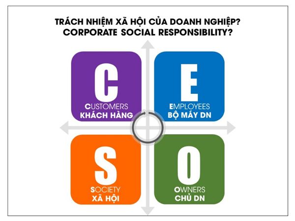 Xin thưa, các nhà xã hội học, các nhà nghiên cứu kinh tế, các nhà hoạch định chính sách, sau khi nghiên cứu sự tác động qua lại giữa doanh nghiệp và xã hội đã chỉ ra rằng, CSR dựa trên 4 tiêu chí: Trách nhiệm với khách hàng. Trách nhiệm với bộ máy doanh nghiệp. Trách nhiệm với chủ doanh nghiệp. Trách nhiệm với xã hội.