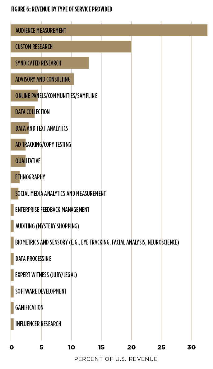 There are five former top 50 companies that are not on the list this year. Abt Associates, MarketCast, Service Management Group and Simmons Research chose not to participate in the report this year. Acturus was acquired by Macromill.
